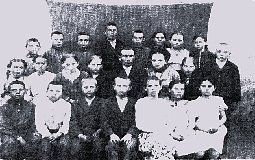 Т. Волкова, кандидат истор. наук, комментарии: Почти половину из депортированных немцев составляли дети (~48%). Посещение школы для многих стало недоступным из-за болезней, отсутствия одежды и обуви, незнания языка обучения. Во многих поселках имелась только начальная школа. Нормальным явлением в классах были ребята-переростки. Эдуард Абрамс приводит фото своего 4-го класса (помещенное выше), где в верхнем ряду стоят ребята 16–14 лет. Самому Эдуарду (2-й ряд, 1-й справа) было уже 13 лет. Уровень образования немецкого населения резко упал, ибо историческая травма отпечаталась и на судьбах поколений, рожденных уже в 1950-е гг. Здесь следует говорить о детях всех народов, насильственно перемещенных в Казахстан.