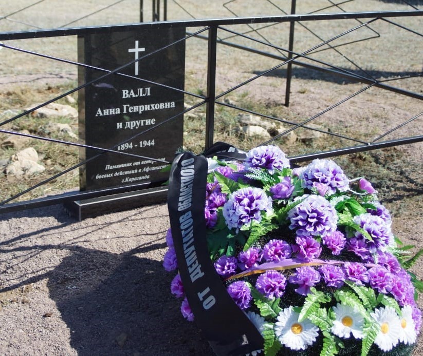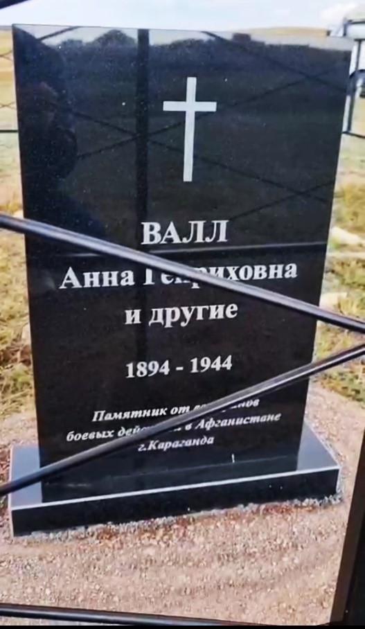 После демонтажа старой ограды установили новую. В центре участка поставили памятник, состоящий из плиты и стелы. На стеле выгравирован католический крест, под ним размещена надпись, перенесенная с прежней таблички: «ВАЛЛ АННА ГЕНРИХОВНА И ДРУГИЕ 1894 –1944». Ниже добавлены слова «Памятник от ветеранов боевых действий в Афганистане г. Караганда». На оборотной стороне стелы изображений и надписей нет.  Старую металлическую пластину с надписью очистили, реставрировали, покрасили и снова прикрепили к оградке.