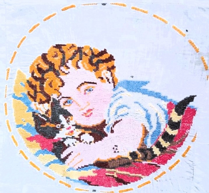Известно, что эта вышивка выполнена женщиной–немкой по имени Паулина (фамилия, к сожалению, утеряна), которая была в трудармии на Южном Урале, а потом поселилась в г. Усть-Камногорске. В 2009 г. Любовь Леонтьева, правнучка Паулины, передала все ее рукодельные изделия своей подруге В. Ивлевой.
