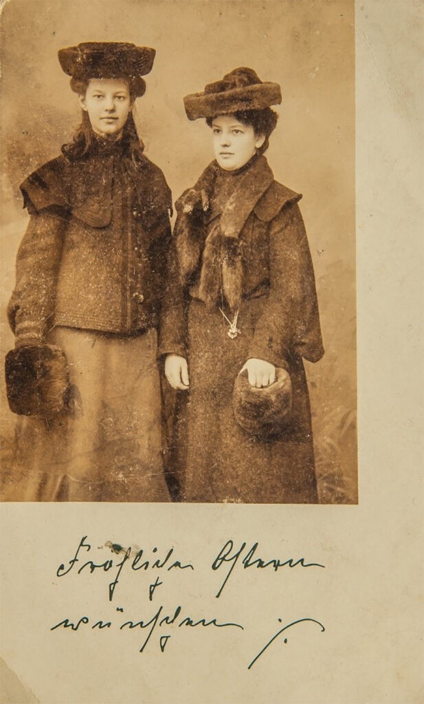 На паспорту от руки черным цветом написано на немецком языке «Fröhlichen Ostern wünschen» («Желаем счастливой Пасхи»). Судя по одежде, фото было сделано в н. XX в. Снимок сделан в профессиональной студии с использованием фона, что было стандартной практикой для портретов того времени. Такие студийные снимки часто использовали как персональные поздравительные открытки, которые отправляли своим семьям и друзьям.