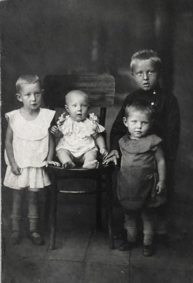 Слева – Фрида Вильгельм, 1928 г. р., с другими детьми. Константиновка, Украина. В 1938 г. ее отца Карла Вильгельма арестовали и больше о нем ничего не было известно.