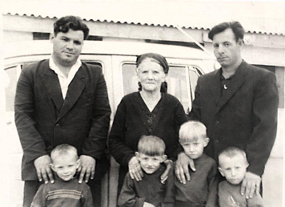 Елизавета Геринг с сыновьями Вальтером (справа) и Яковом (слева). Слева направо: дети Виктор, Рудик, Яша, Эвальд. С. Ермак (ныне г. Аксу) Павлодарской обл.