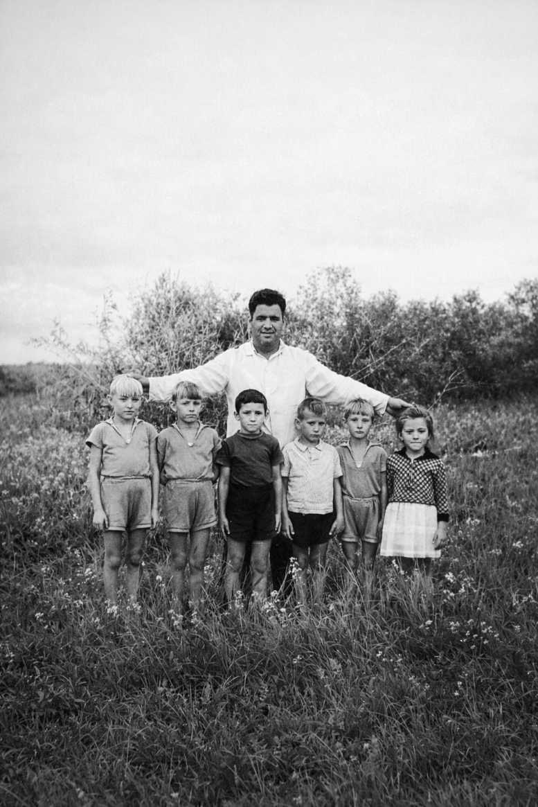 Я.Г. Геринг с ребятами в пойме р. Иртыш. Слева направо: племянники Яша и Рудик, Вова Гергерт, сын гл. зоотехника колхоза, сын Эвальд, племянник Витя и дочь Лора.
